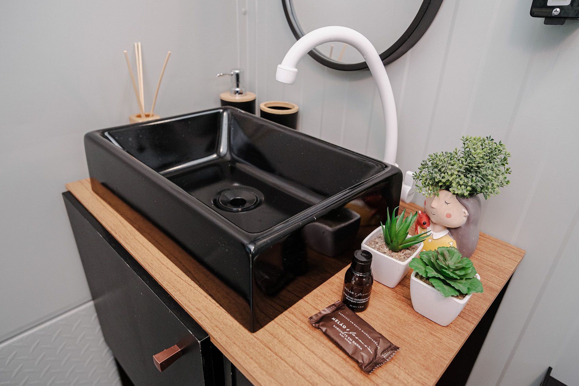 Nosso espaço é composto por dois contêineres aconchegantes, posicionados lado a lado. O quintal é compartilhado entre os hóspedes, e nele há um banquinho sob a sombra — perfeito para relaxar, ler um livro ou apreciar o final de tarde.
